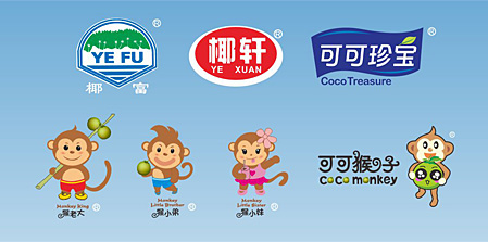 公司擁有“椰富”、“椰軒”、“可可猴子”、“猴老大”、“猴小弟”、“猴小妹”、“可可珍寶”等品牌。主要用于椰汁、椰子油、椰漿、椰蓉、椰絲方面,注重宣傳和提升產品質量,培養客戶對本公司品牌的認可,爭創弛名商標。